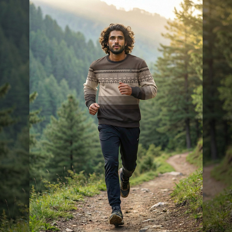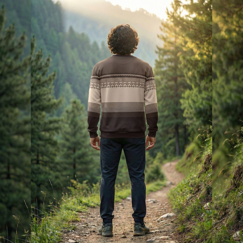 This sweatshirt is a masterpiece of versatile design. The sophisticated pattern and neutral colors make it the perfect choice for a variety of occasions. Pair it with dark denim for a refined casual look on a weekend in Lahore, or with khaki chinos for a smart-casual aesthetic in Islamabad. It is a statement of culture and quiet confidence, perfect for the man who appreciates both history and style.