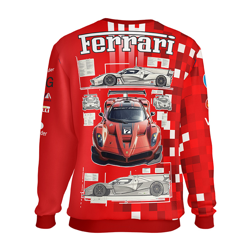 • Vibrant 360° Design: A true all over print sweatshirt featuring detailed Formula 1 and Ferrari FXX-K Evo car schematics.