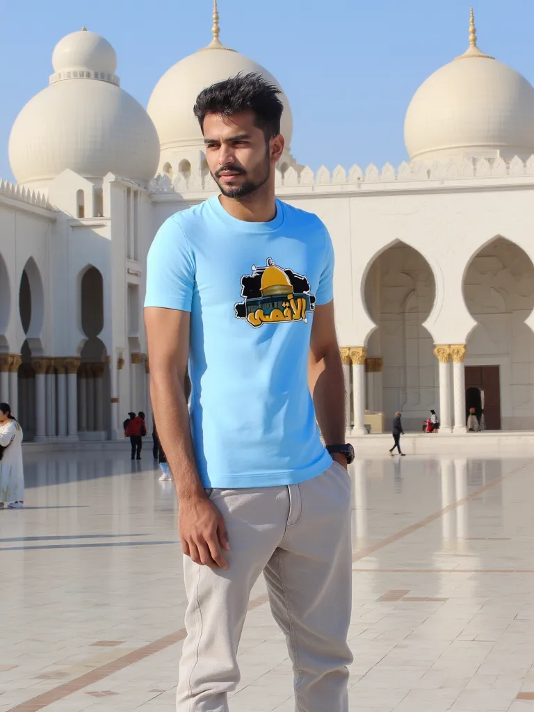 Digital heat transfer stickered Graphic Islamic T Shirt.