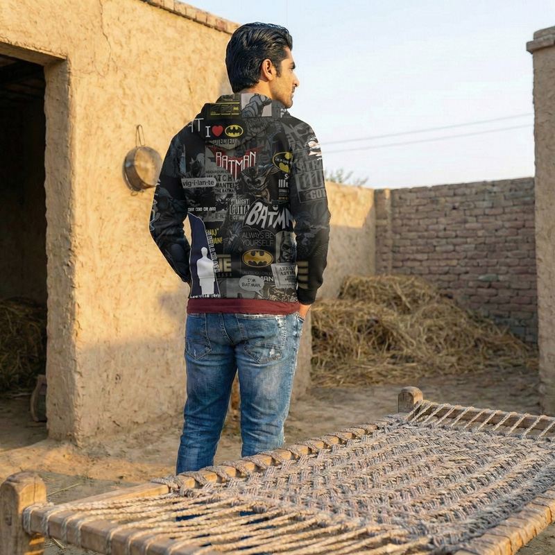Become the night with the definitive Batman Hoodie Pakistan for every DC fan. “The Gotham Guardian” is a premium hooded jacket, crafted from structured Scuba fabric for warmth and style. It’s a wearable archive of the Dark Knight’s legacy, wrapping you in the pages of his most iconic comic book moments in a design that’s both gritty and sophisticated.