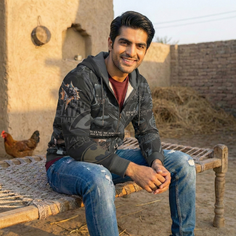 Engineered for the Streets of Gotham This is not a lightweight t-shirt; it’s a proper hooded jacket. The Lycra Polyester Scuba fabric provides more structure and warmth than standard materials, making it the perfect outerwear for mid-seasons and winters in Pakistan. The fabric remains soft, breathable, and features 4-way stretch, offering a comfortable and modern fit that moves with you, whether you’re on a mission or just navigating your day.