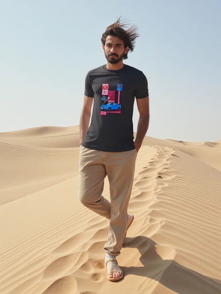 Digital heat transfer stickered Graphic T Shirt.