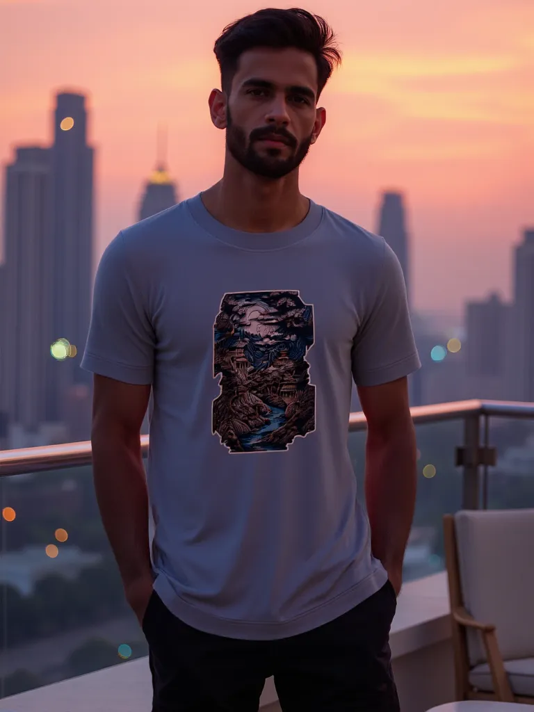 Graphic T Shirt | Japanese Pop Art | Village scene