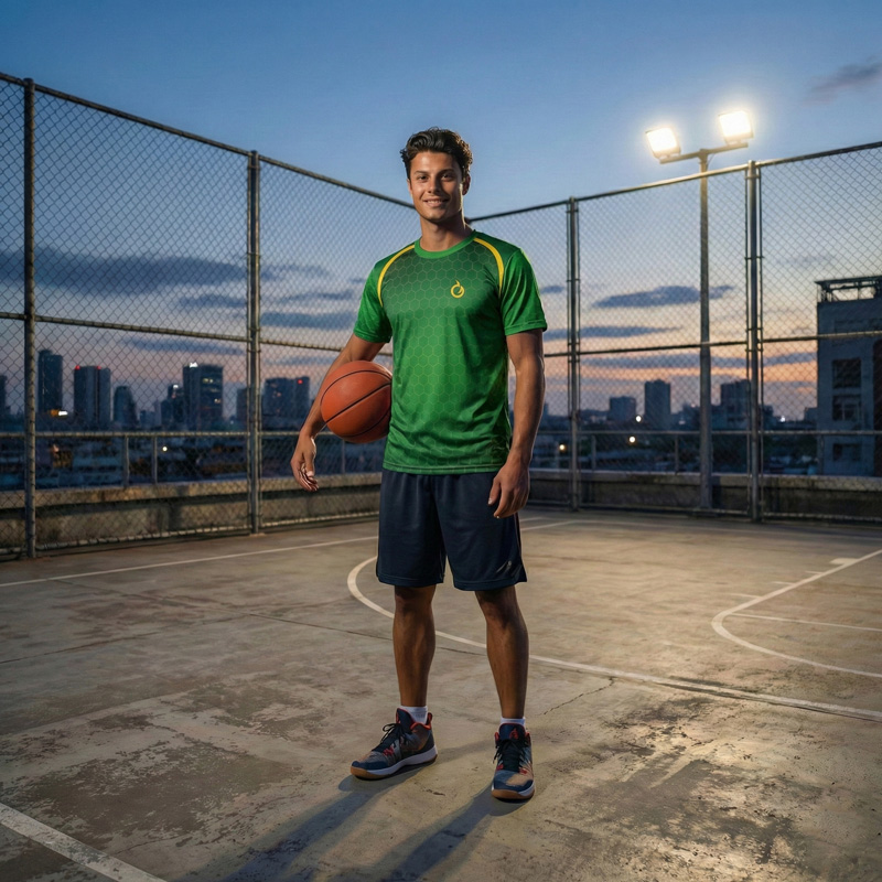 Engineer your performance with the Hexa-Tech All Over Print Sports T-Shirt, a precision-designed addition to the Gymkhana.pk catalog. This shirt features a seamless emerald green honeycomb lattice pattern that wraps around the entire body, symbolizing structural strength and endurance. Contrasting yellow shoulder stripes add a flash of energy, creating a look that is both technical and athletic.