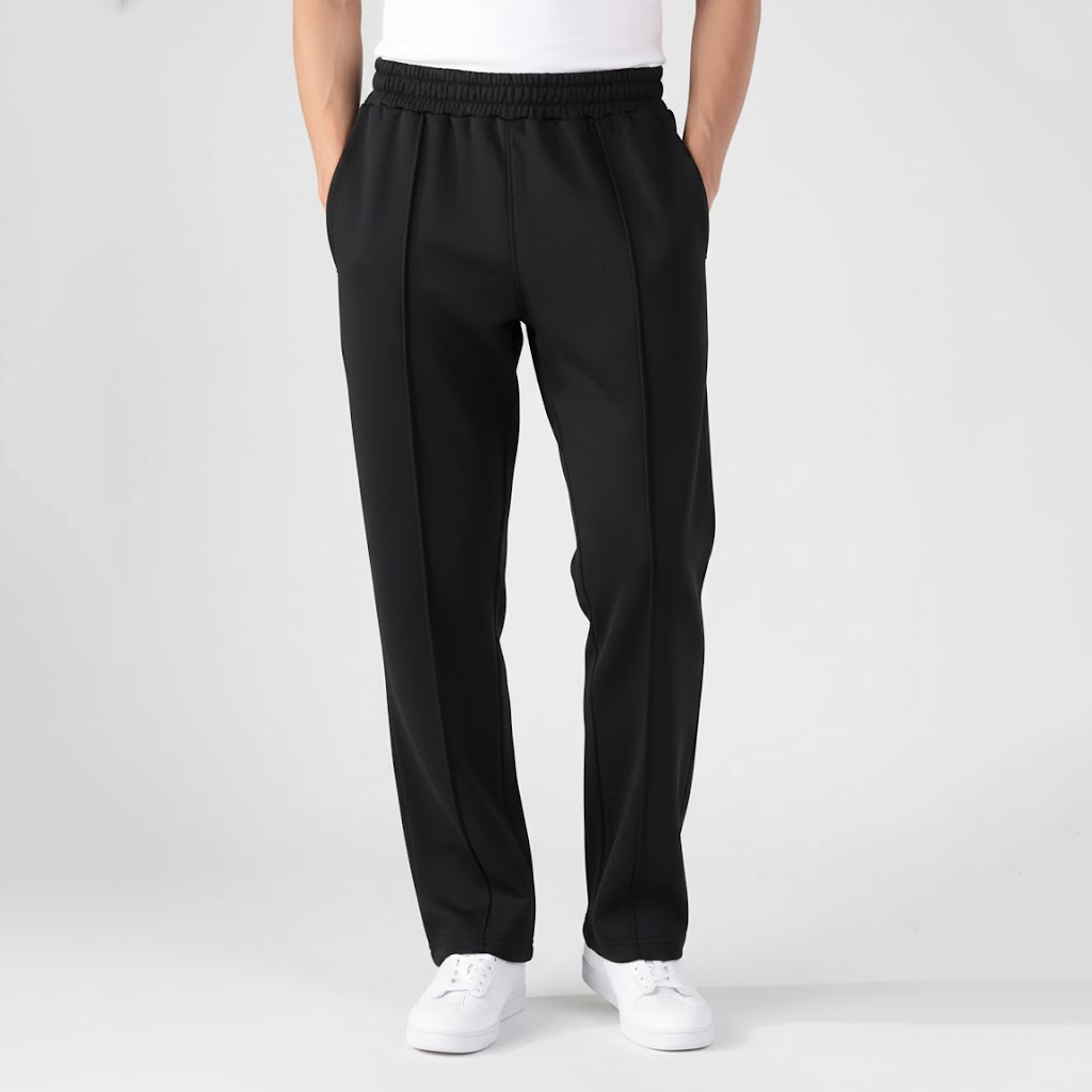 Whether you’re at the gym, jogging, or simply enjoying a casual day, these trousers deliver. The straight-fit cut ensures a timeless silhouette with plenty of room to move, while the front pintuck seam adds a touch of classic sportswear detail. Featuring a comfortable elastic waistband, two side pockets, and a convenient back pocket, these are the ultimate all-purpose trousers for any sports or leisure activity.