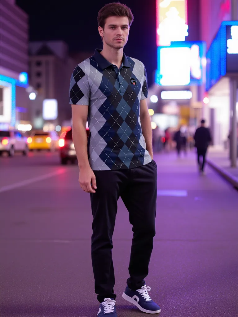 Mo’ayyan, a retro, casual on trend Sublimated Argyle design men’s polo shirt. Constructed from a unique super-soft, breathable Polyester fabric to provide you with a soft easy care polo that retains it’s shape, making it the perfect shirt for travel and leisure activities. Digital All Over Print Argyle pattern Graphic Sublimated Polo Shirt.
