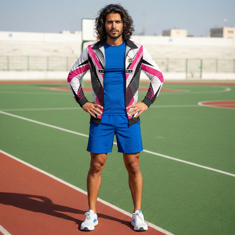 - Material: Soft, Breathable, stretchy Polyester Lycra blend. The blend keeps the All over print Sublimated Zip Collar Nitro Sports Jacket Pakistan and colors durable and long lasting.