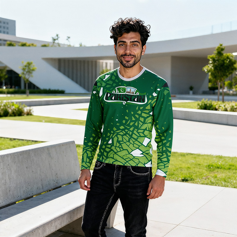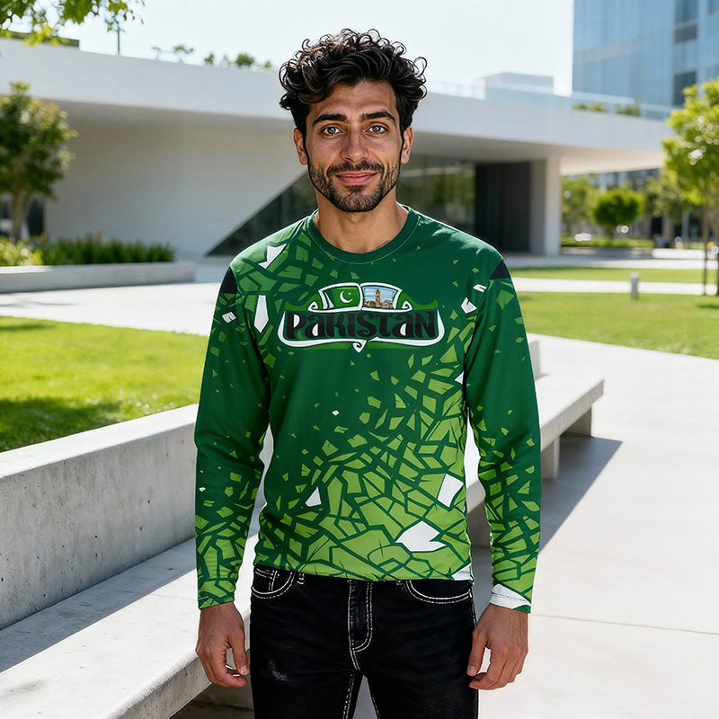 Engineered for the Nation’s Heartbeat Crafted from a premium Lycra Polyester blend, this shirt is as resilient and versatile as the people of Pakistan. The fabric is soft, breathable, and features 4-way stretch, providing superior comfort and a non-restrictive fit for any activity. Designed for all seasons, this long sleeve shirt offers excellent protection from the sun’s rays and serves as a comfortable layer in cooler weather, making it ideal for the diverse climate from Karachi to Kashmir.