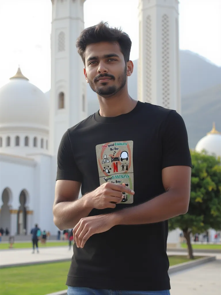 Digital heat transfer stickered Graphic Islamic T Shirt.