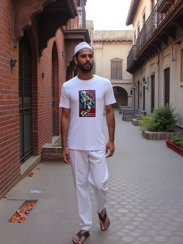 Digital heat transfer stickered Graphic Islamic T Shirt.