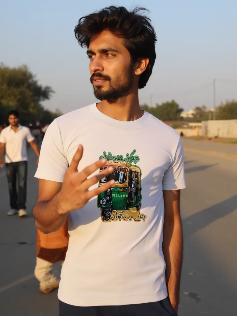 In many cities in Pakistan, there are also motorcycle rickshaws, usually called “chand gari” (moon car) or “chingchi”, after the Chinese company Jinan Qingqi Motorcycle Co. Ltd who first introduced these to the market. Digital Heat Transfer Print Sticker Graphic T Shirt.