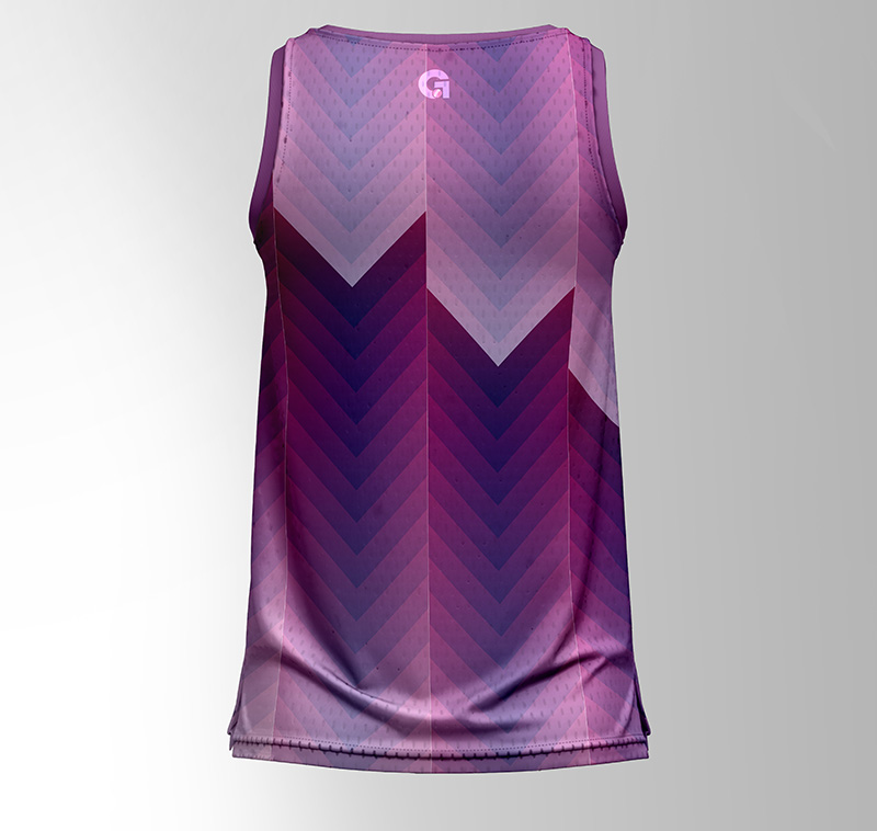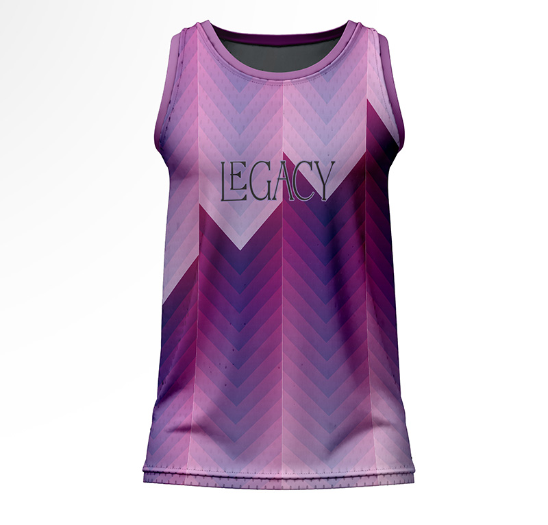 The ‘Amethyst’ design features a bold, all-over geometric chevron pattern in a stunning purple-to-pink gradient, with the “LEGACY” graphic proudly displayed on the chest. This intricate design is applied using advanced sublimation, which fuses the ink directly into the fabric, guaranteeing the vibrant graphics will never fade, crack, or peel. The breathable, elastic mesh knit makes this a versatile, all-season essential.