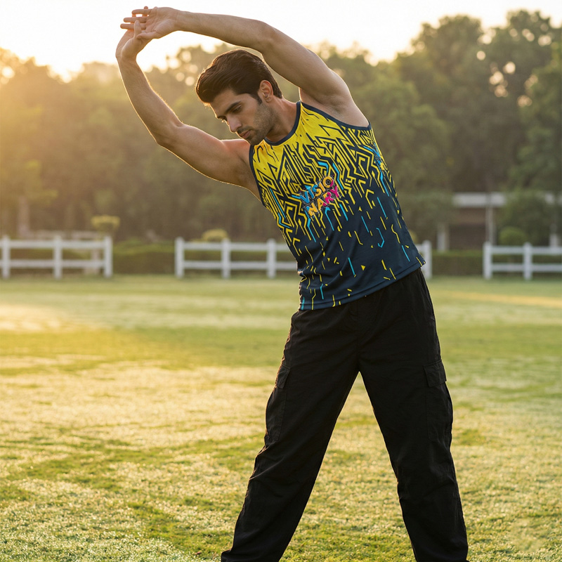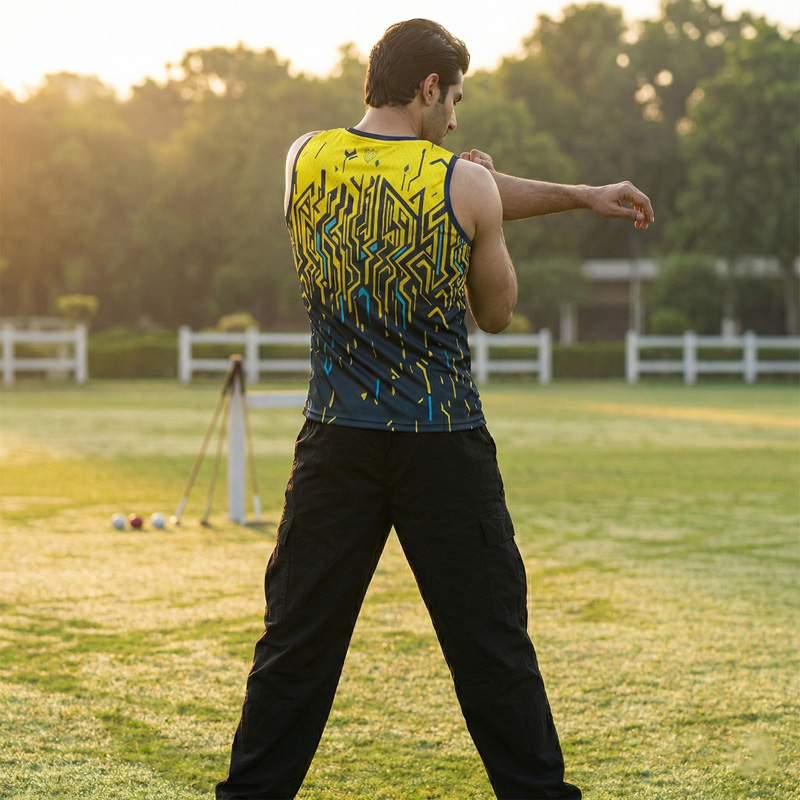 Be a “Visionary” in the Labyrinth Sublimated Gym Vest, a premium sleeveless top designed for the forward-thinking Pakistani athlete. This tank top is engineered from an extra-soft, 170 GSM Lycra Mesh fabric that is dry-fit, durable, and high-quality. Its 4-way stretch (90% Polyester, 10% Spandex) provides elite comfort and mobility for the gym, jogging, or any leisure activity.