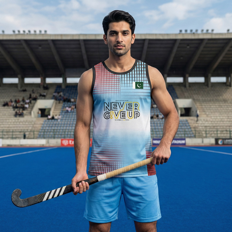 Build momentum and “Never Give Up” with this premium Sublimated Gym Vest, designed for the dedicated Pakistani athlete. This tank top is engineered from an extra-soft, 170 GSM Lycra Mesh fabric that is dry-fit, durable, and high-quality. Its 4-way stretch (90% Polyester, 10% Spandex) provides elite comfort and mobility for the gym, jogging, or any leisure activity.
