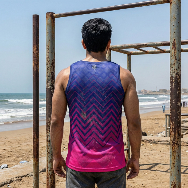 “Escape the Ordinary” with the Pixel Sublimated Gym Vest, a premium sleeveless top designed for the Pakistani athlete who breaks the mold. This tank top is engineered from an extra-soft, 170 GSM Lycra Mesh fabric that is dry-fit, durable, and high-quality. Its 4-way stretch (90% Polyester, 10% Spandex) provides elite comfort and mobility for the gym, jogging, or any leisure activity.