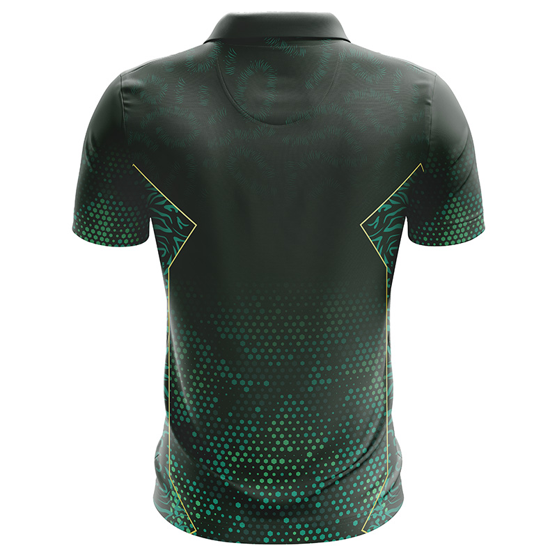 The ‘Mycelium’ design features an intricate, all-over print in black and green, with a halftone dot gradient and subtle organic patterns, accented by sharp gold piping. This complex design is applied using advanced sublimation, which fuses the ink directly into the fabric, ensuring it will never fade, crack, or peel. The breathable, elastic mesh knit makes this a versatile, all-season essential.