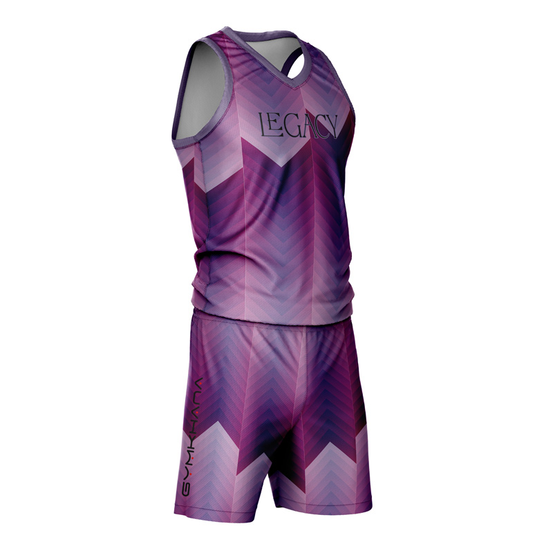The ‘Amethyst’ design features a bold, all-over geometric chevron pattern in a stunning purple-to-pink gradient, with the “LEGACY” graphic on the chest and the “GYMKHANA” logo on the shorts. This intricate, all-over print is applied using advanced sublimation, which fuses the ink directly into the fabric, guaranteeing the vibrant graphics will never fade, crack, or peel. The breathable, elastic mesh knit makes this a versatile, all-season essential.