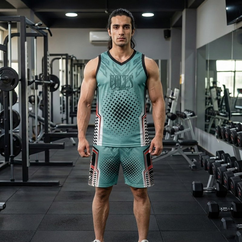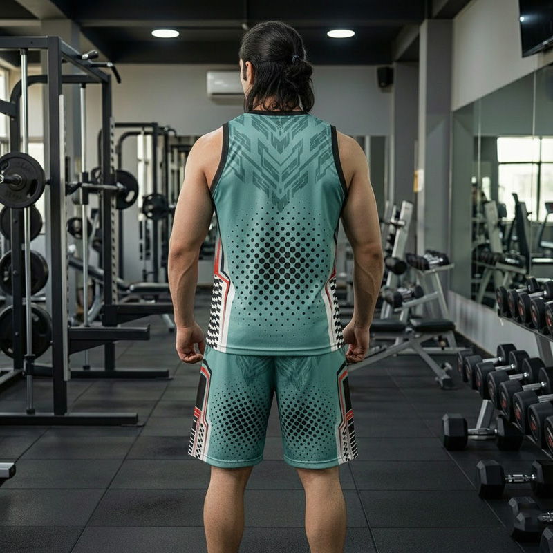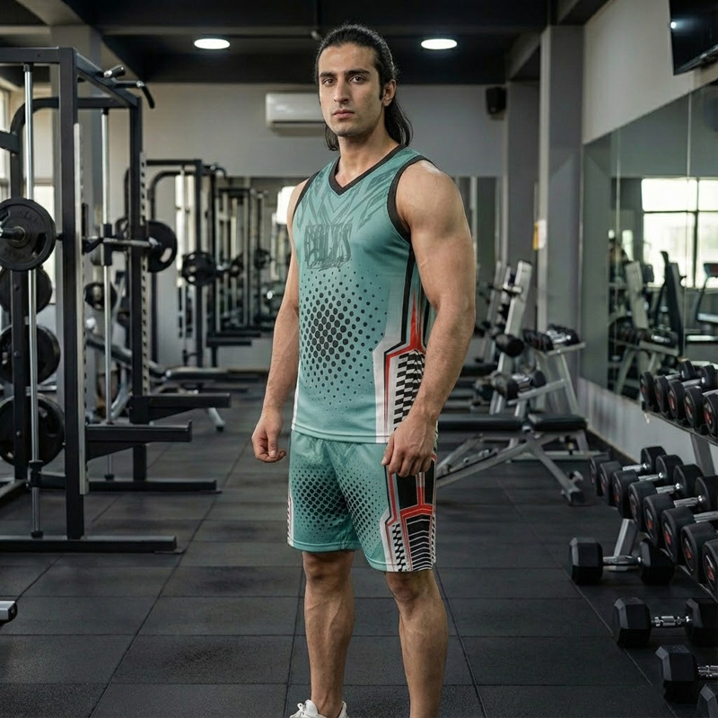 Power up your workout with the Circuit Sublimated Twinset, a premium sleeveless shirt and shorts set designed for the modern Pakistani athlete. This complete kit is engineered from an extra-soft, 170 GSM Lycra Mesh fabric that is dry-fit, durable, and high-quality. Its 4-way stretch (90% Polyester, 10% Spandex) provides elite comfort and mobility for the gym, jogging, or any leisure activity.