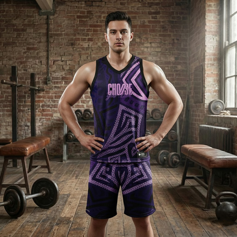The ‘Codex’ design features a unique, all-over tribal/geometric pattern in shades of purple and pink, with the “Choose Your Path” graphic on the chest. This intricate design is applied using advanced sublimation, which fuses the ink directly into the fabric, guaranteeing the vibrant graphics will never fade, crack, or peel. The breathable, elastic mesh knit makes this a versatile, all-season essential.